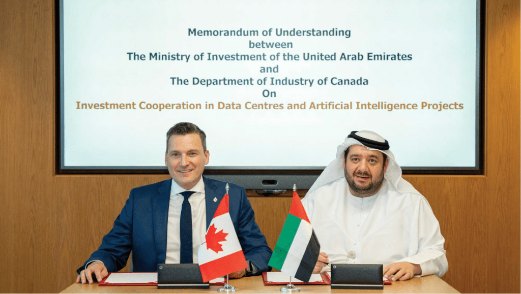Earlier this week, the Canadian Government signed a Memorandum of Understanding (MoU) with Invest UAE by the Ministry of Investment to explore collaboration in digital infrastructure, with a particular focus on AI and data centre development. The agreement aims to foster joint innovation by exchanging expertise and technical knowledge, supporting new investment projects in advanced technology sectors, and facilitating the flow of information in line with international best practices.